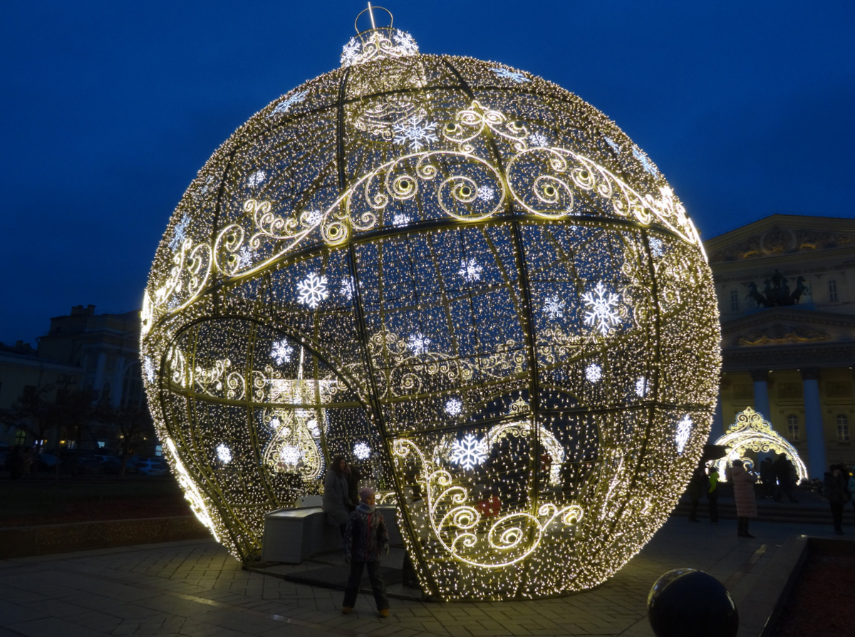 На Театральной площади сделаны световые инсталляции и установлен большой светящийся шар. Каждый год ему радуюсь как ребенок!